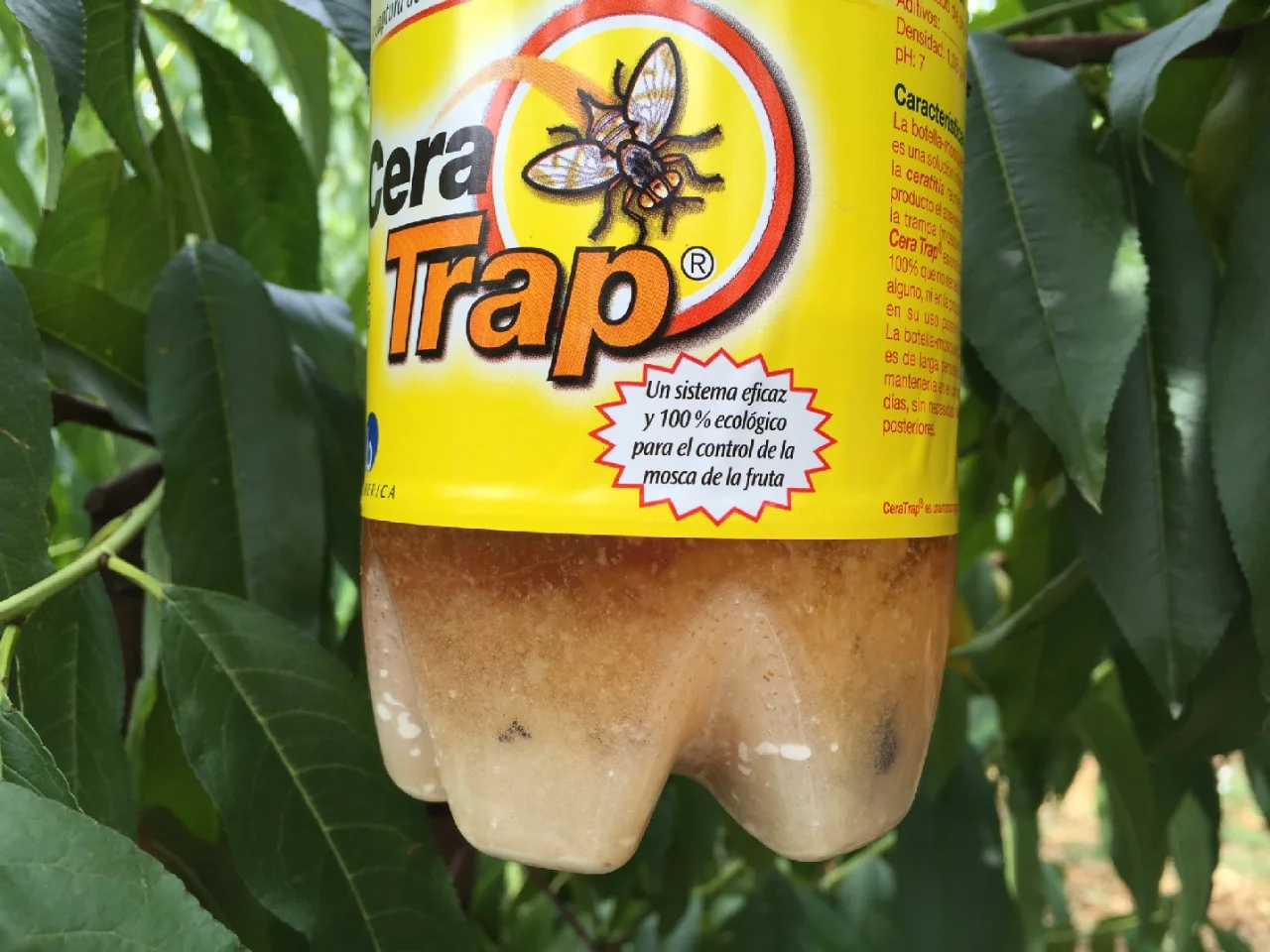 برای تهیه محلول تله، معمولاً از 100 تا 150 میلیلیتر پروتئین غلیظ به همراه 300 تا 400 میلیلیتر آب استفاده میشود. در صورتی که از روش شکار سمی استفاده میکنید، مقدار کمی (معمولاً حدود 5 تا 10 میلیلیتر) از حشرهکش مالاتیون ۵۷ درصد به محلول اضافه میشود. تلهها باید در ارتفاع حدود 1.5 تا 2 متر از سطح زمین، در مکانهایی نسبتاً سایهدار نصب شوند. بسته به تراکم آفت و نوع باغ، تعداد تلهها ممکن است از 30 تا بیش از 100 عدد در هر هکتار متفاوت باشد. تلهها باید بهصورت دورهای (هر 7 تا 10 روز یکبار) بازبینی و شارژ شوند.این روش بهویژه در باغهای کوچک و متوسط یا در باغهایی که مایل به استفاده حداقلی از سموم هستند، بسیار مؤثر است.